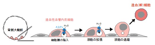 • ⽔チャネル分⼦アクアポリンが内⽪-造⾎転換に関与することを初めて証明