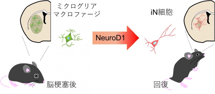 • 本研究では、ミクログリア/マクロファージからニューロンへのダイレクトリプログラミングにより、脳梗塞モデルマウスでの損傷後の神経機能を回復させることに成功しました。