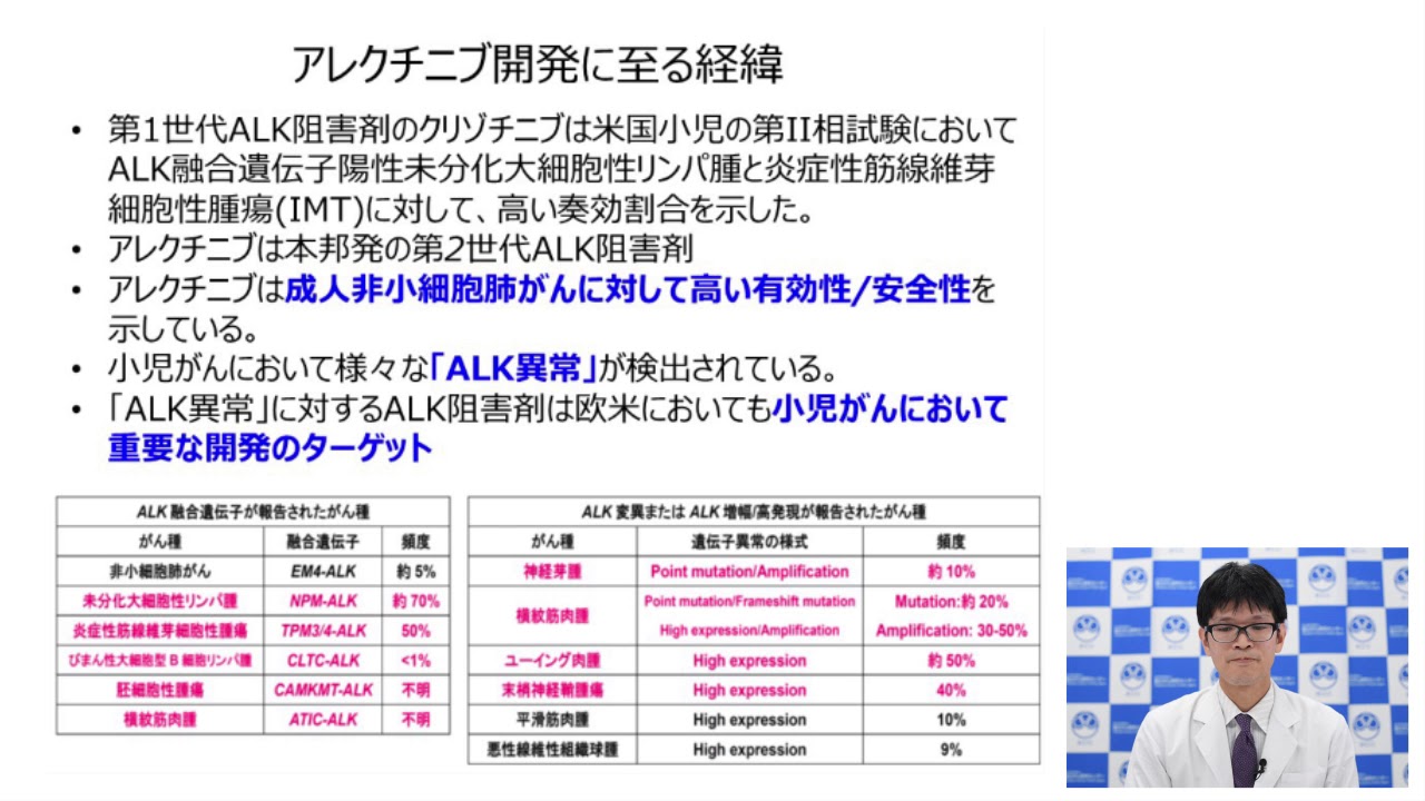 本試験でアレクチニブの小児における安全性が確認できれば、将来的な適応拡大の検討も可能となります。