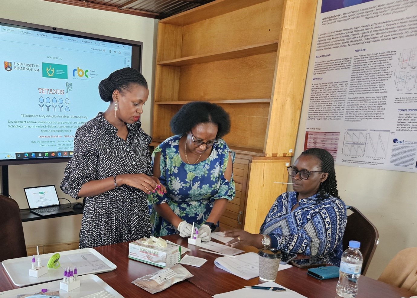 Research medics in Rwanda familiarise themselves with saliva test before study roll out.<関連情報>
