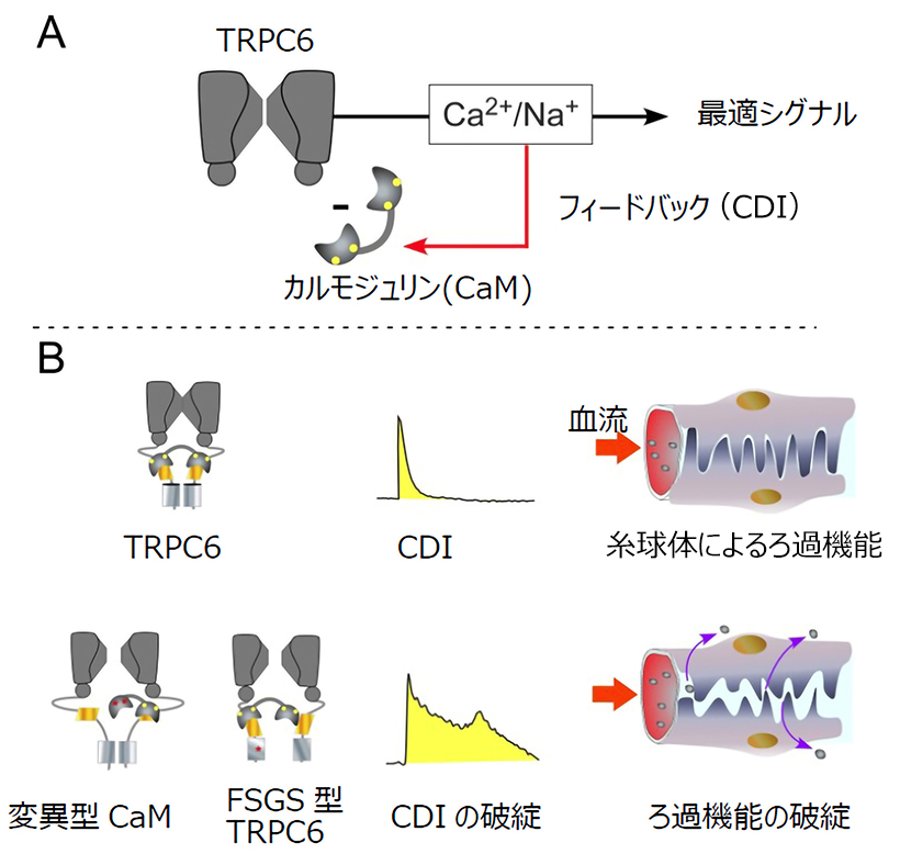 本研究成果はTRPC6のCDI分子機構を明らかにすると共に、このブレーキ機構の破綻がFSGS発症原因であるという新しい概念を提唱するもので、FSGSの診断、治療へ向けた重要な足がかりになると考えられます。