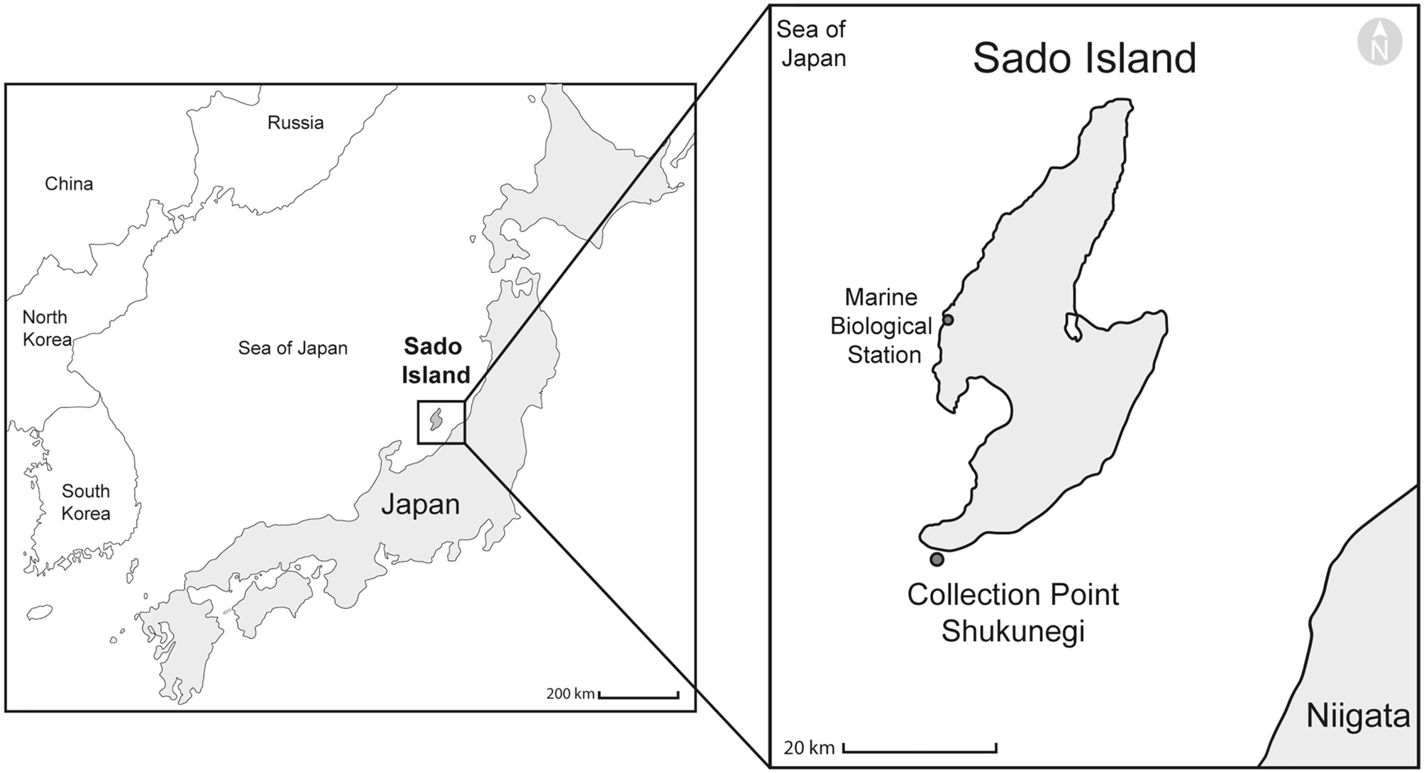 2019年10月に東京大・三崎臨海実験所、新潟大・佐渡臨海実験所、ゲッティンゲン大学、マドリード自治大学などの研究者からなるチームが佐渡島南部の宿根木で潜水調査を行い、環形動物が内部に棲息しているカイメンを採集した(図1)。
